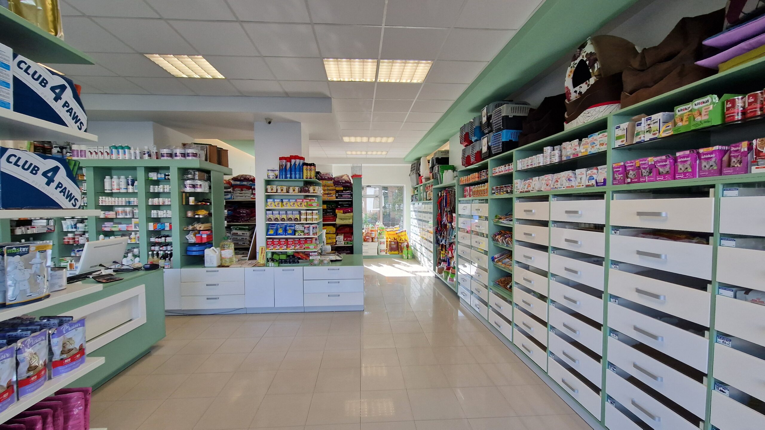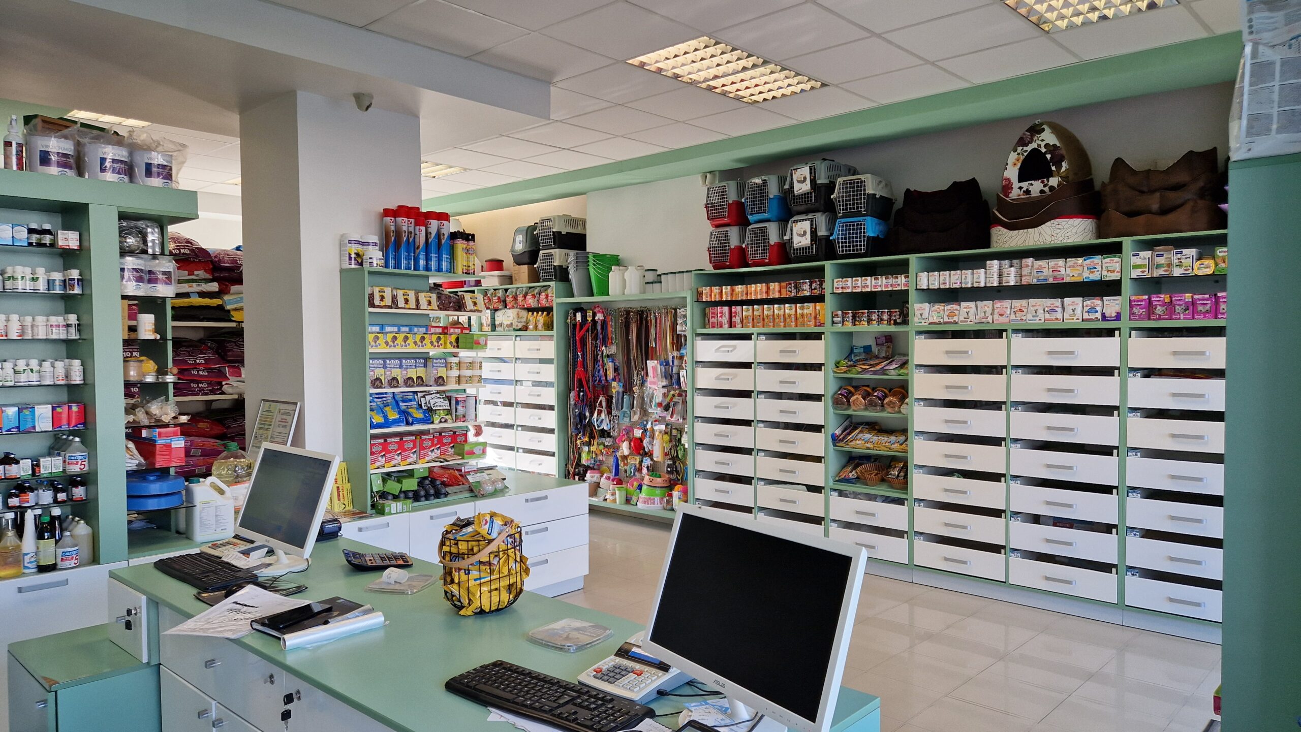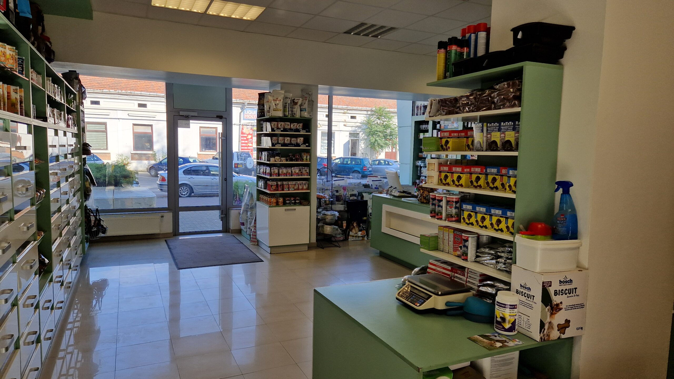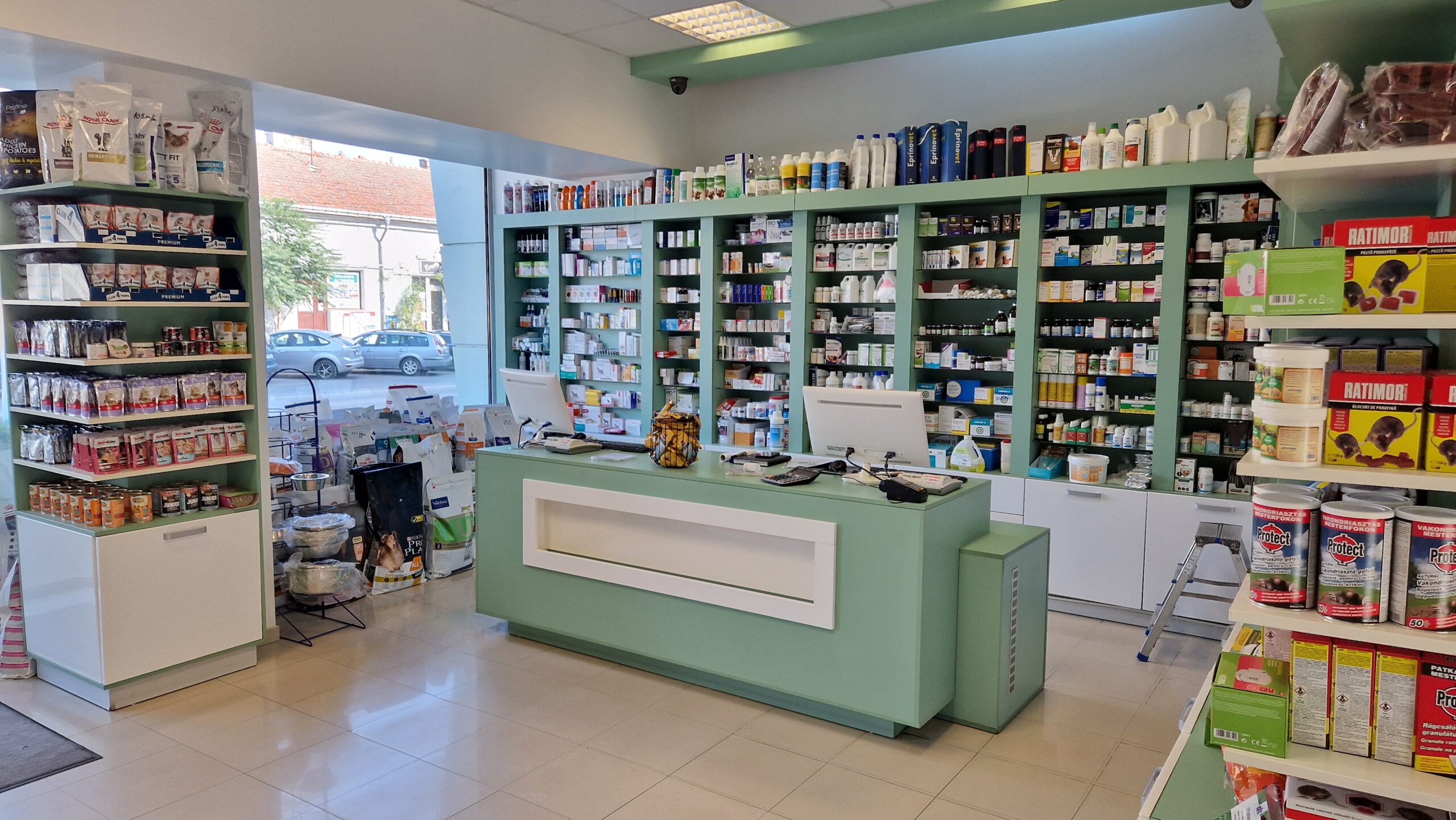 Farmacie veterinara se afla in vecinatatea clinicii veterinare, unde pot fi achizitionate hrana pentru animalele de companie si pentru animalele de renta, accesorii pentru animale, dar si medicamente pentru tratamentul afectiunilor