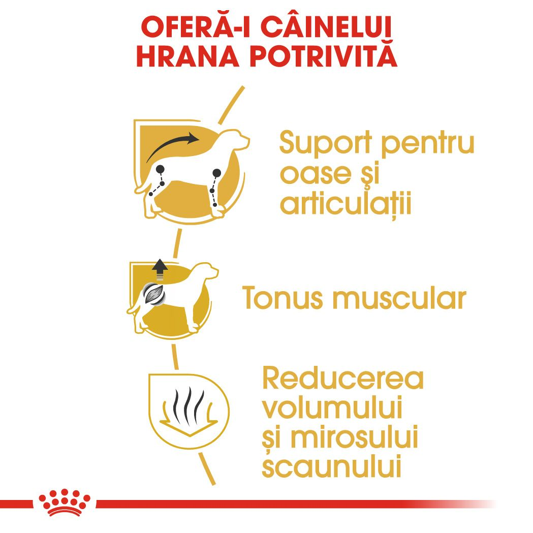 COMPOZIŢIE: orez, proteine de carne de pasăre deshidratată, gluten de grâu*, proteine animale hidrolizate, grăsimi animale, fibre vegetale, pulpă de sfeclă, săruri minerale (inclusiv trifosfat pentasodic (0,35%)), ulei de peşte, ulei de soia, fructo-oligozaharide, ulei de borago, făină din crăiţe, glucozamină obţinută prin fermentaţie, cartilaj hidrolizat (sursă de condroitină).