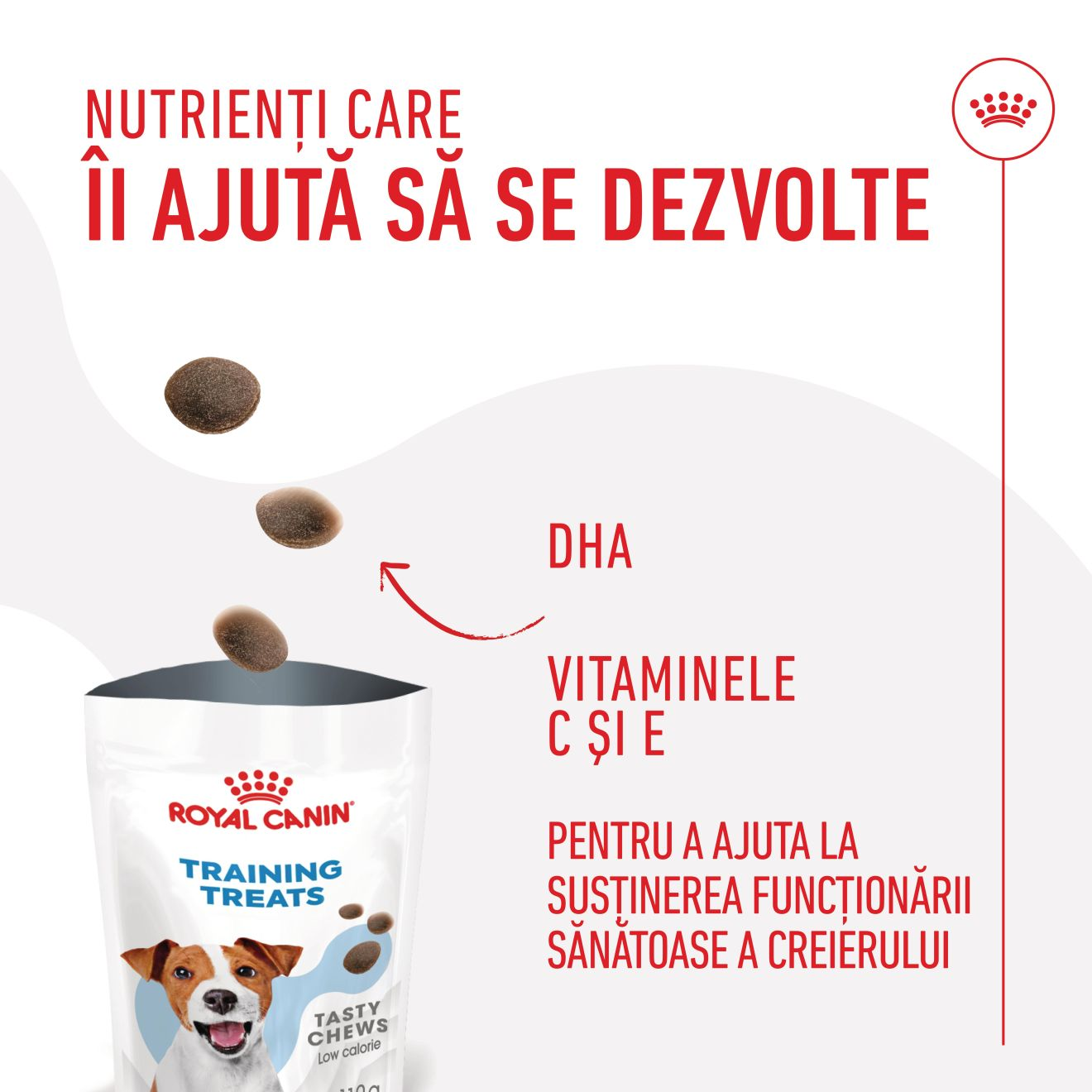 MOD DE ÎNTREBUINŢARE: recompense pentru câini de peste 6 luni. Îţi recomandăm să nu-i oferi zilnic mai mult decât numărul maxim de bucăţi indicat în ghidul de hrănire. Dacă oferi recompense animalului tău de companie, este recomandat să ajustezi cantitatea mesei principale în mod corespunzător pentru a-i menţine o greutate corporală sănătoasă. Pentru orice întrebare, te rugăm să te adresezi medicului veterinar. Număr de lot/Număr de identificare fabricant/Data de expirare: a se vedea informaţiile înscrise pe ambalaj. A se păstra într-un loc uscat şi răcoros. Apa trebuie să fie disponibilă în permanenţă.