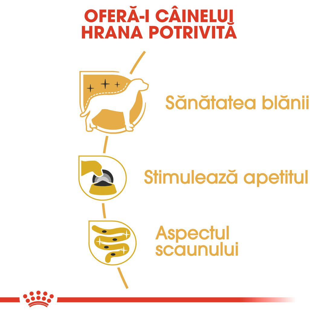 COMPOZIŢIE: carne şi produse derivate de origine animală, produse derivate de origine vegetală, cereale, săruri minerale, uleiuri şi grăsimi.
